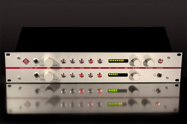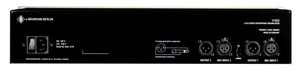 The V 402 is a state-of-the art dual channel microphone preamplifier with an integrated studio grade headphone amplifier. Its transformerless circuitry is designed for maximum transparency and sonic purity. The V 402 is thus the perfect complement to all Neumann microphones in order to unveil the true character of voices and instruments.