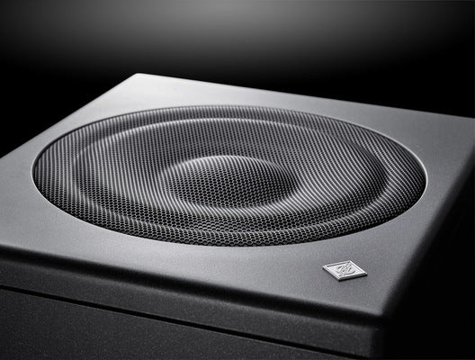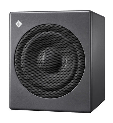 The newly designed 10” long-throw driver has a strong linear working magnet system with ELFF™ technology (Extremely Linear Force Factor™). As subwoofers are usually placed on the floor, a robust grille protects the driver from accidental damage. The ultra-compact cabinet is a closed design, which ensures the fastest possible transient response. The two analog XLR inputs are balanced as are the two analog XLR outputs. The 192 kHz / 24-bit digital input can accept AES3 and S/PDIF signals. If no signal is present for more than 90 minutes, the auto bypass function reduces power consumption to 0.3 W.