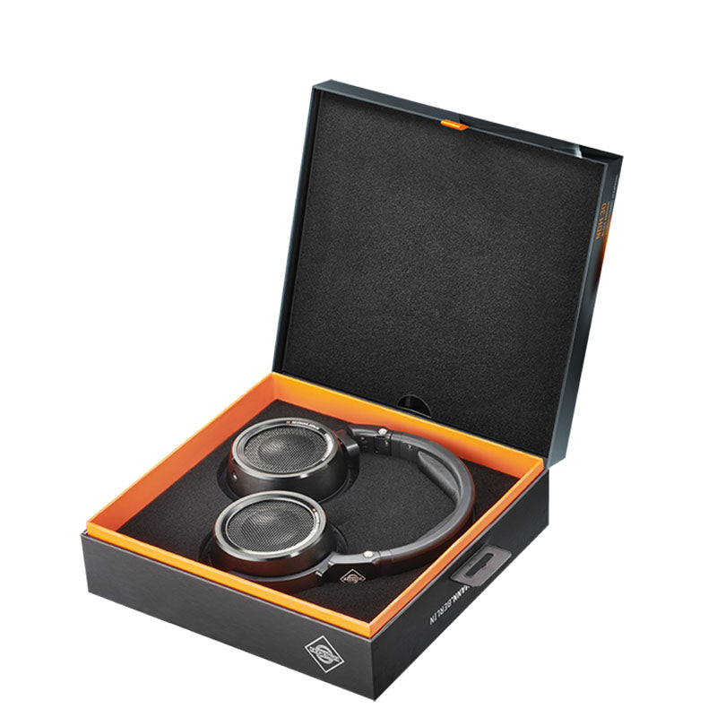 Its high-quality construction of spring steel and aluminum as well as its pleasant handling properties are largely the same as those of the NDH 20. However, the NDH 30 is an open-back headphone, which means that its dynamic 38 mm transducers work as acoustic dipoles. This allows their highly refined sound characteristics to unfold optimally: extremely fast transient response, dry bass, uncolored mids and transparent highs. In other words, the NDH 30 has no sound coloration, but reproduces the signal 1:1.