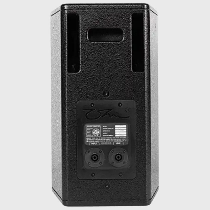 The rear cast aluminium connection plate has two 4 pin speakON® connectors fitted as standard, one input and one link. The speakON® connectors are wired on pins +1-1, with pass through of pins +2-2.